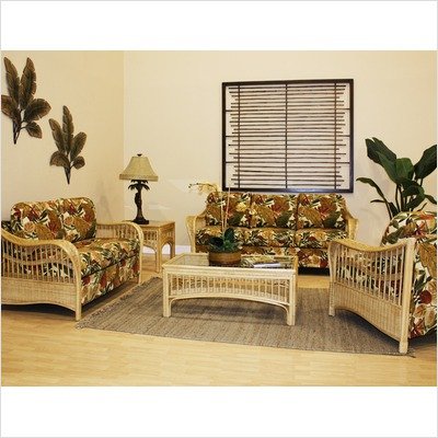 5 PC SET-909-SU-NAT-RC-296 Fabric: Patriot Cadet Shown in apelanga henna Features: -Set includes sofa, loveseat, lounge chair, coffee table and end table. -Traditional indoor upholstered rattan and wicker deep seating group set. -Finished in natural color. -Includes cushion with choice of fabric in a variety of colors and patterns. -Fully assembled. -Woven wicker bindings. Specifications: -Sofa overall dimensions: 36'' H x 78'' W x 36'' D. -Loveseat overall dimensions: 36'' H x 56'' W x 36'' D. -Lounge chair overall dimensions: 36'' H x 34'' W x 36'' D. -Coffee table overall dimensions: 17'' H x 22'' W x 42'' D. -End table overall dimensions: 22'' H x 29'' W x 24'' D.