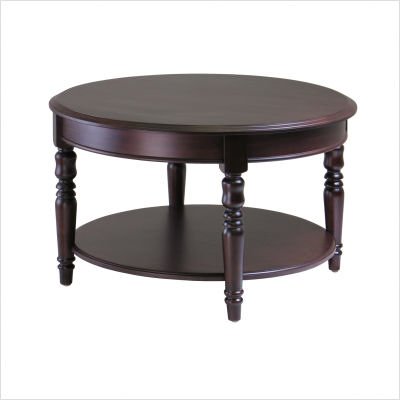 40130 / 40120 Features: -Set includes round coffee table and end table. -Cappuccino finish. -Solid and composite wood construction. -Traditional and classic. -Carved legs with one shelf underneath for storing magazines. -Perfect for keeping lamps or photos. -Assembly required.